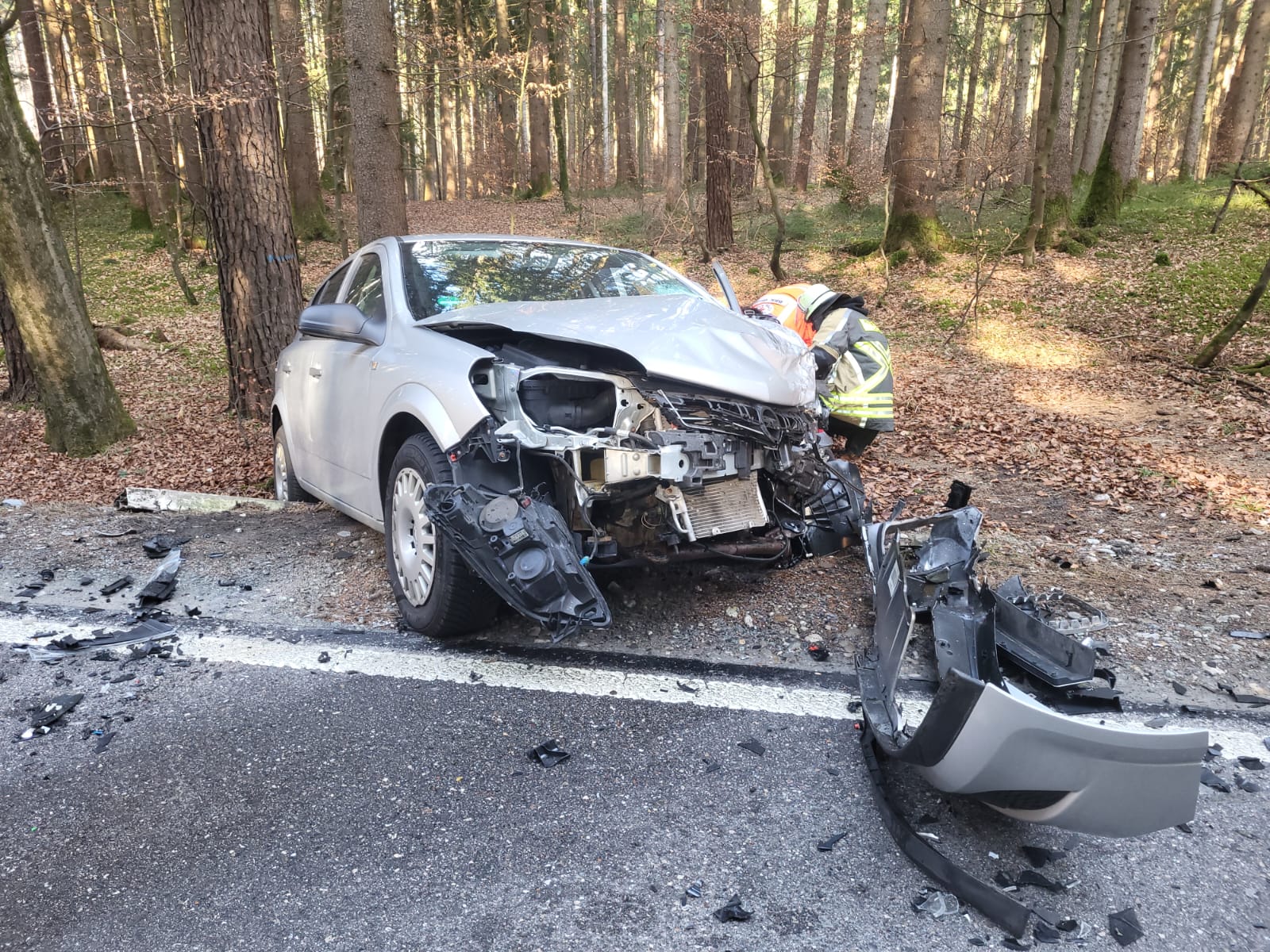 Zwei Fahrzeuge waren frontal zusammengestoßen und anschließend im Straßengraben zum Stillstand gekommen. Insgesamt zwei Personen wurden mittelschwer verletzt und vom Rettungsdienst versorgt.